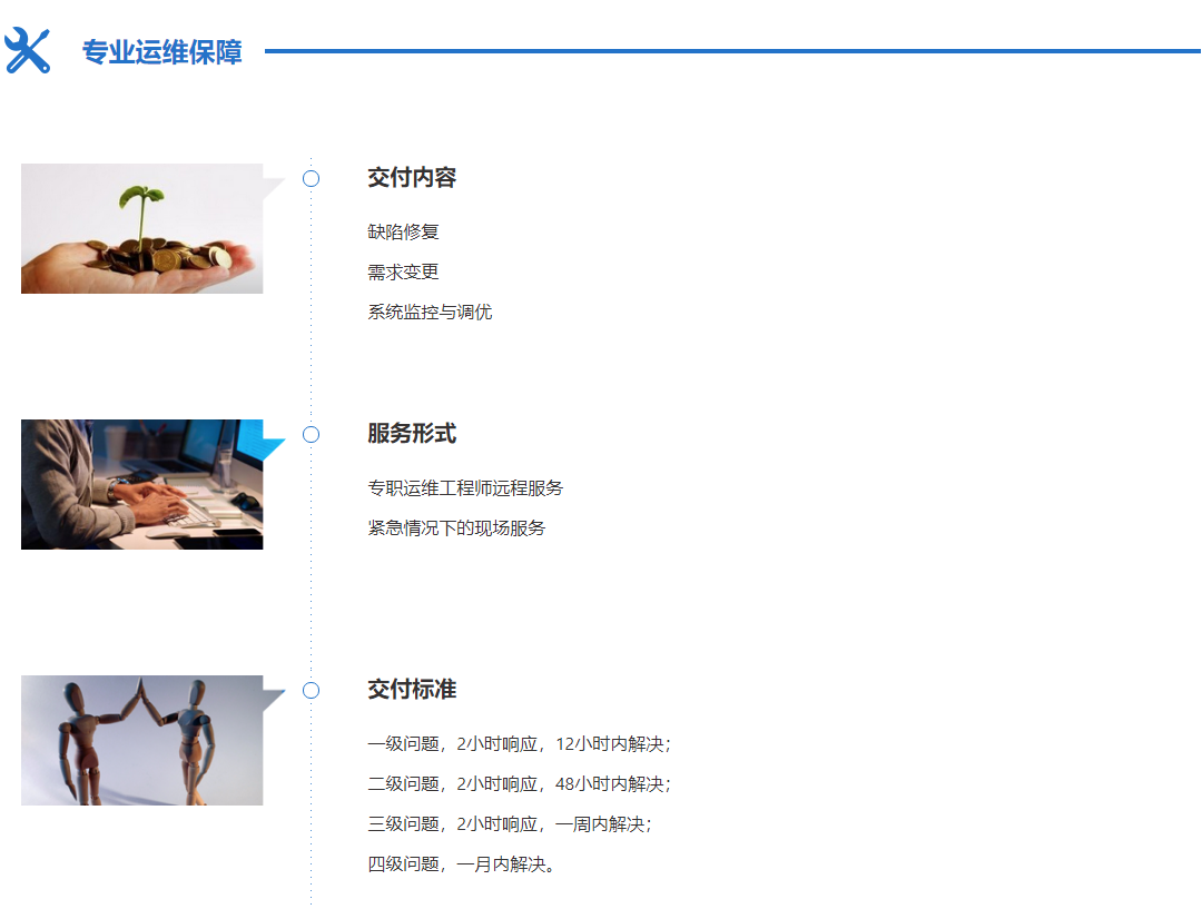 互聯(lián)網(wǎng)應(yīng)用研發(fā)、運(yùn)維一體化服務(wù),面向具有明確的信息系統(tǒng)建設(shè)需求的企業(yè),提供快速交付軟件產(chǎn)品服務(wù),并可根據(jù)企業(yè)需求進(jìn)行后期迭代式開(kāi)發(fā)服務(wù)。