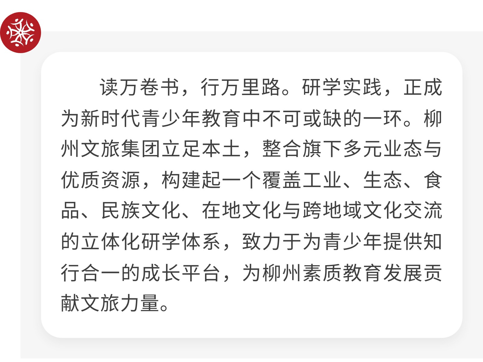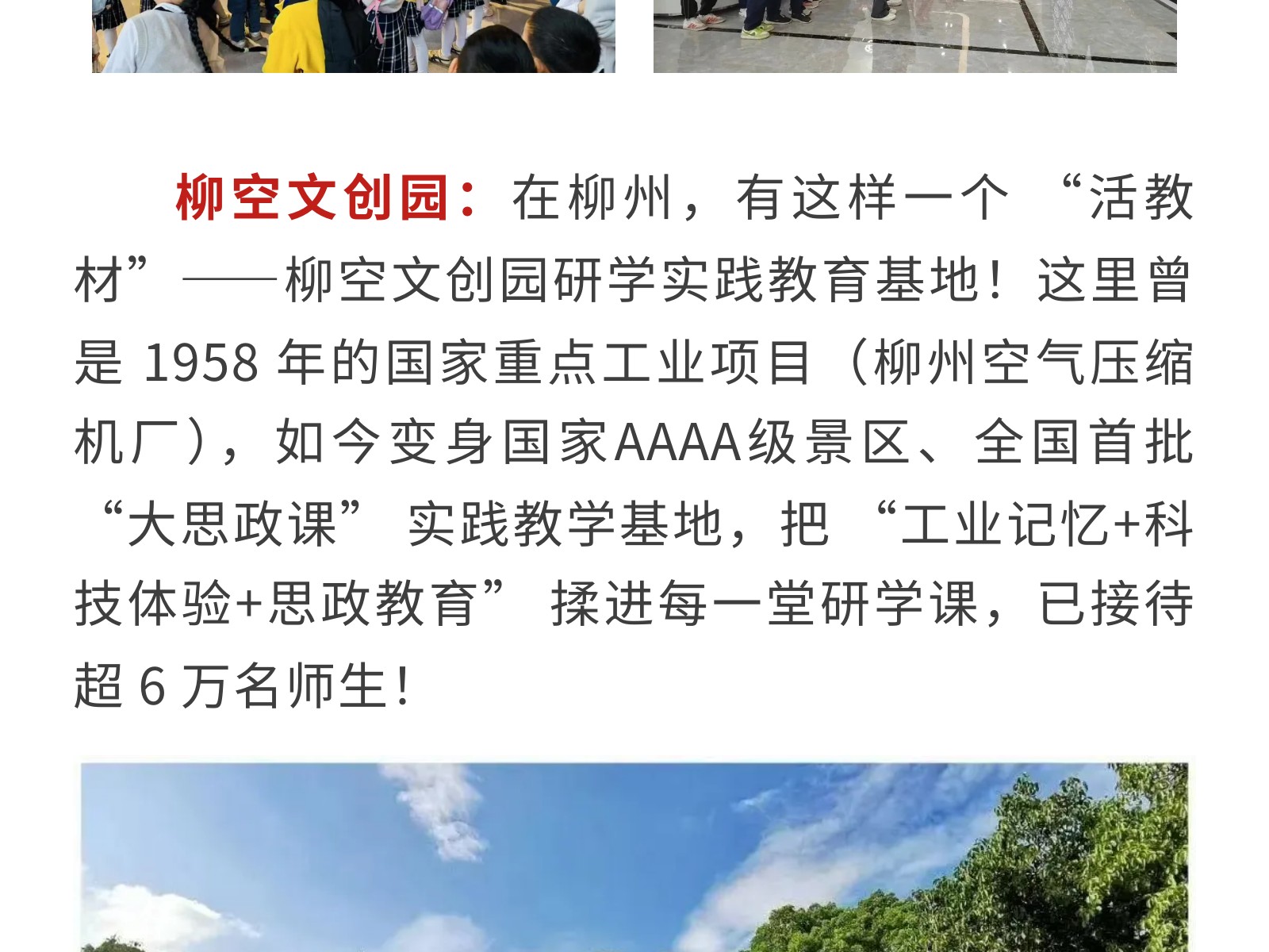 【鑄就研學(xué)新高地,賦能成長新未來】柳州文旅集團(tuán)研學(xué)產(chǎn)業(yè)實(shí)踐與展望 發(fā)布時(shí)間:2025年10月15日 09時(shí)來源:本站原創(chuàng)瀏覽:113 人次