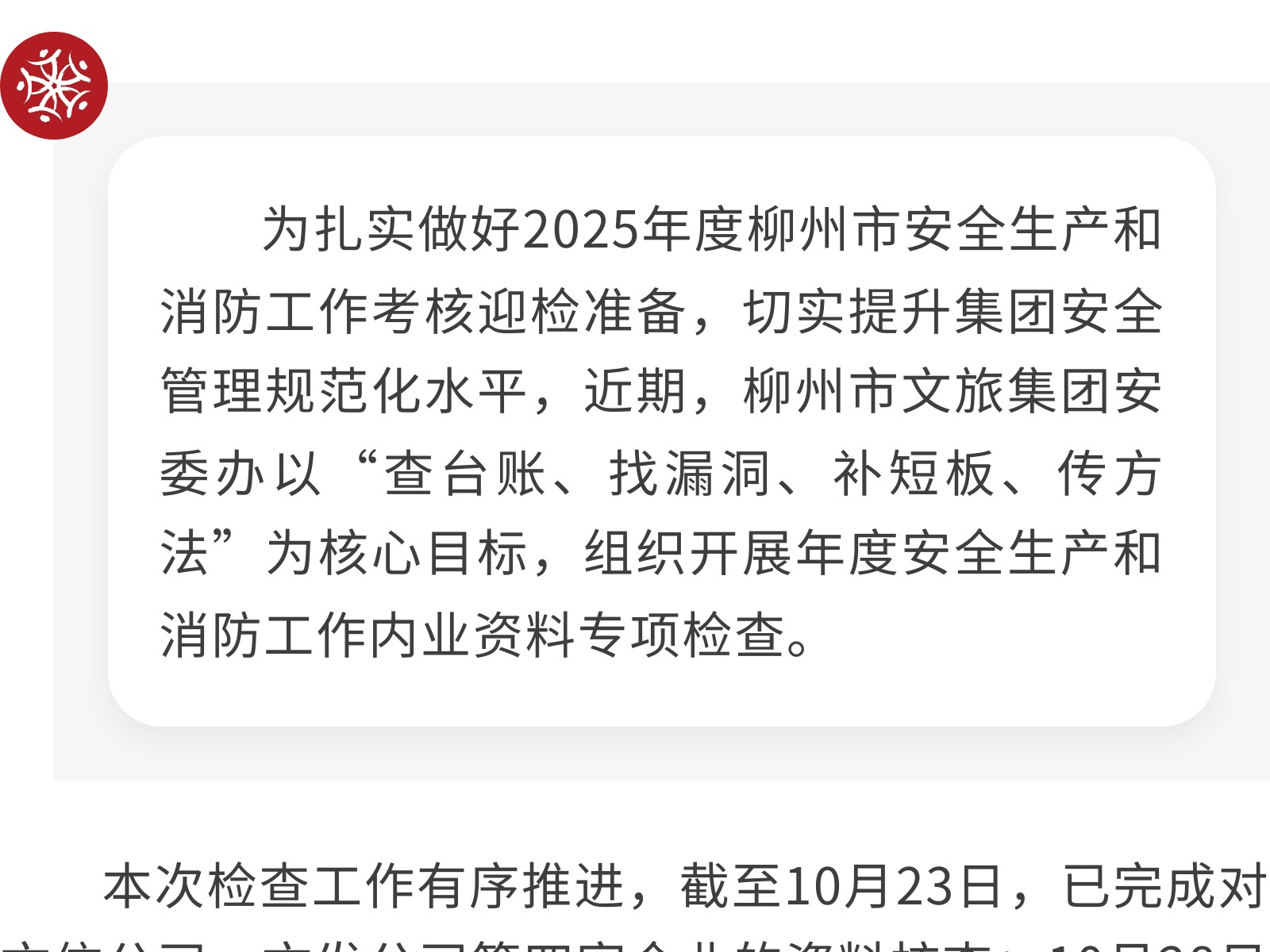 專項檢查安全內(nèi)業(yè)資料 以查促改筑牢安全防線 發(fā)布時間:2025年12月01日 10時來源:本站原創(chuàng)瀏覽:49 人次