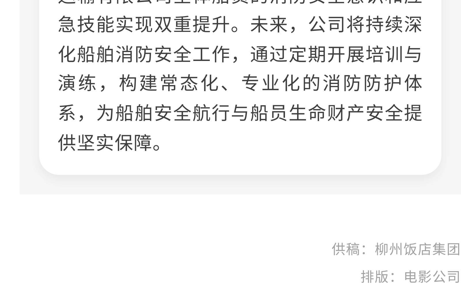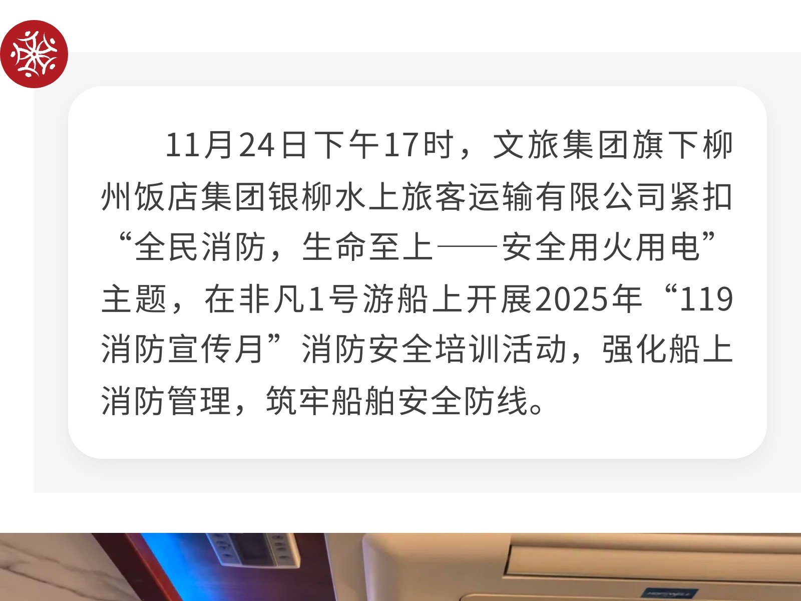 【強化船上消防,守護航行安全】銀柳水上旅客運輸有限公司開展消防安全培訓(xùn)活動 發(fā)布時間:2025年12月09日 10時來源:本站原創(chuàng)瀏覽:35 人次
