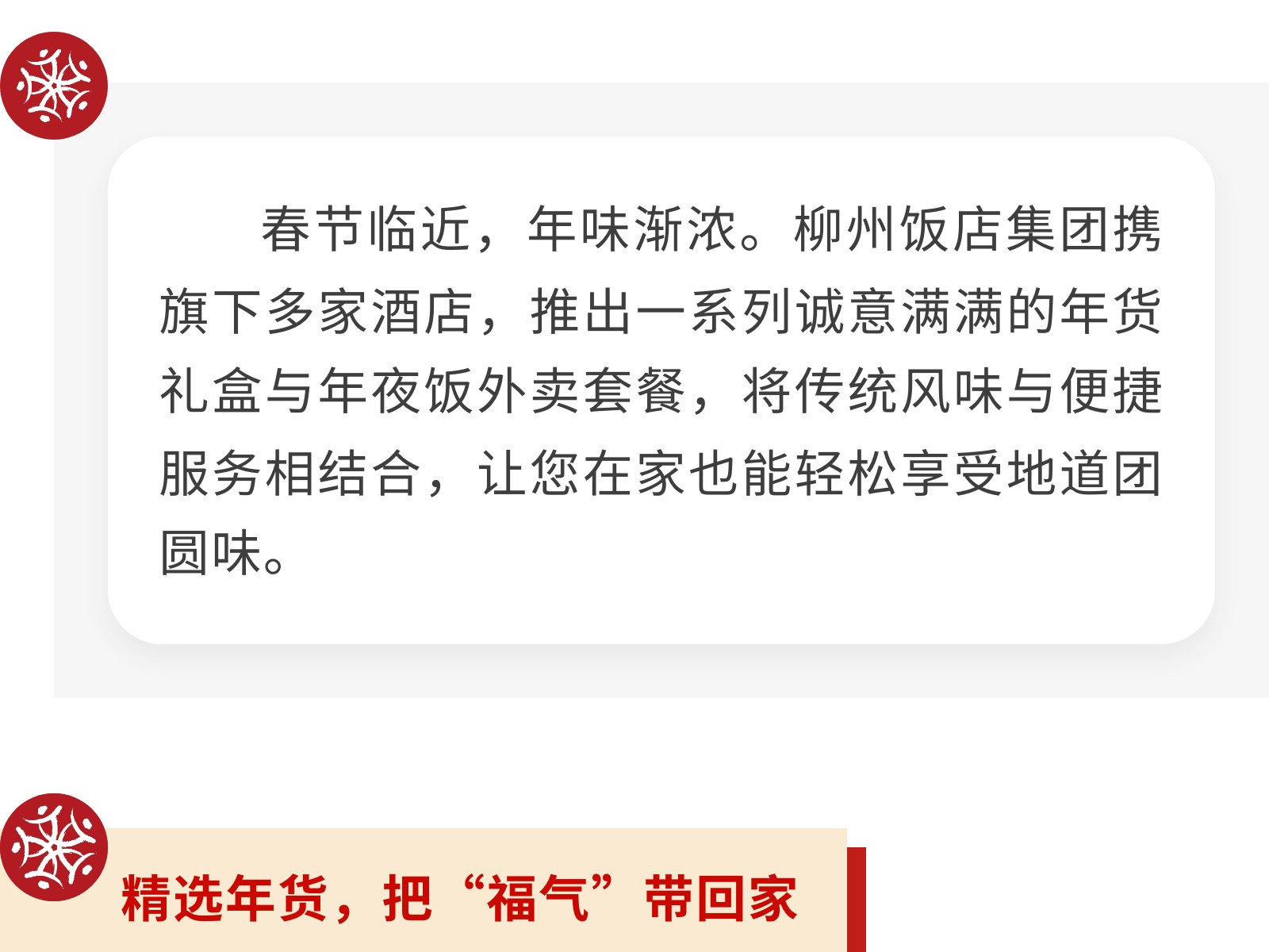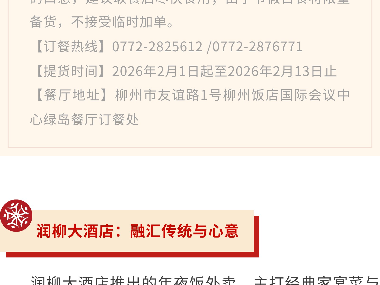 【一口柳州味,滿堂新年紅】文旅集團(tuán)旗下柳州飯店集團(tuán)年貨&年夜飯指南,把團(tuán)圓“打包”回家 發(fā)布時(shí)間:2026年01月16日 14時(shí)來(lái)源:本站原創(chuàng)瀏覽:29 人次