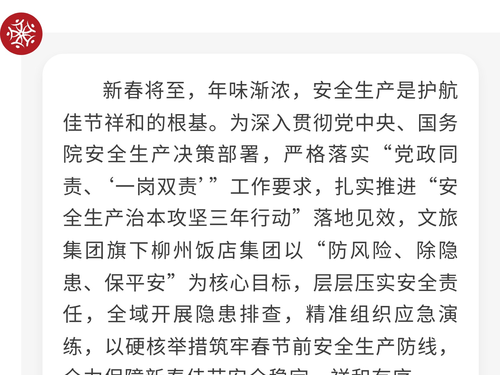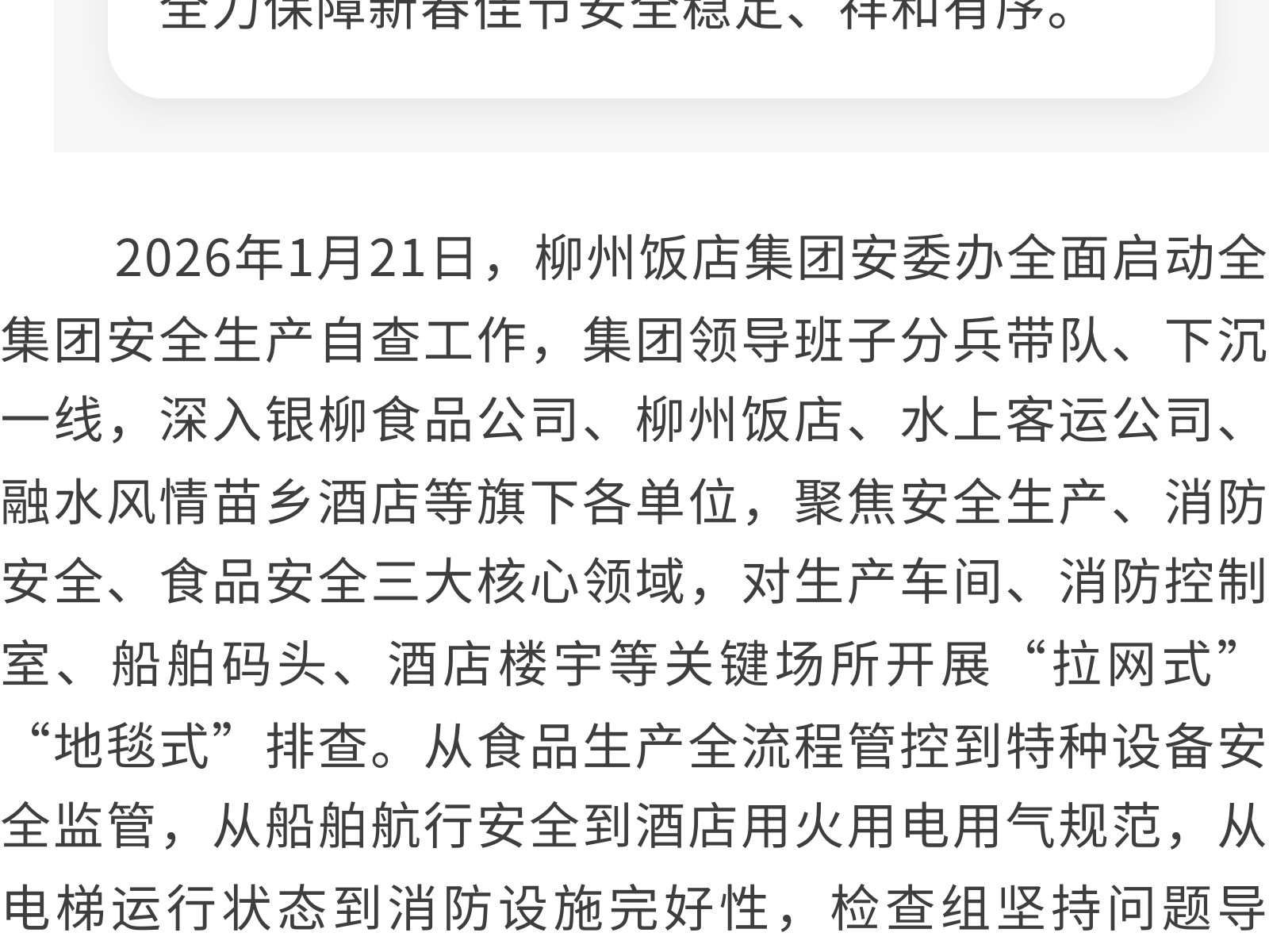 織密安全防護網 護航新春平安年——柳州飯店集團開展春節(jié)前安全生產系列活動 發(fā)布時間:2026年02月13日 13時來源:本站原創(chuàng)瀏覽:11 人次